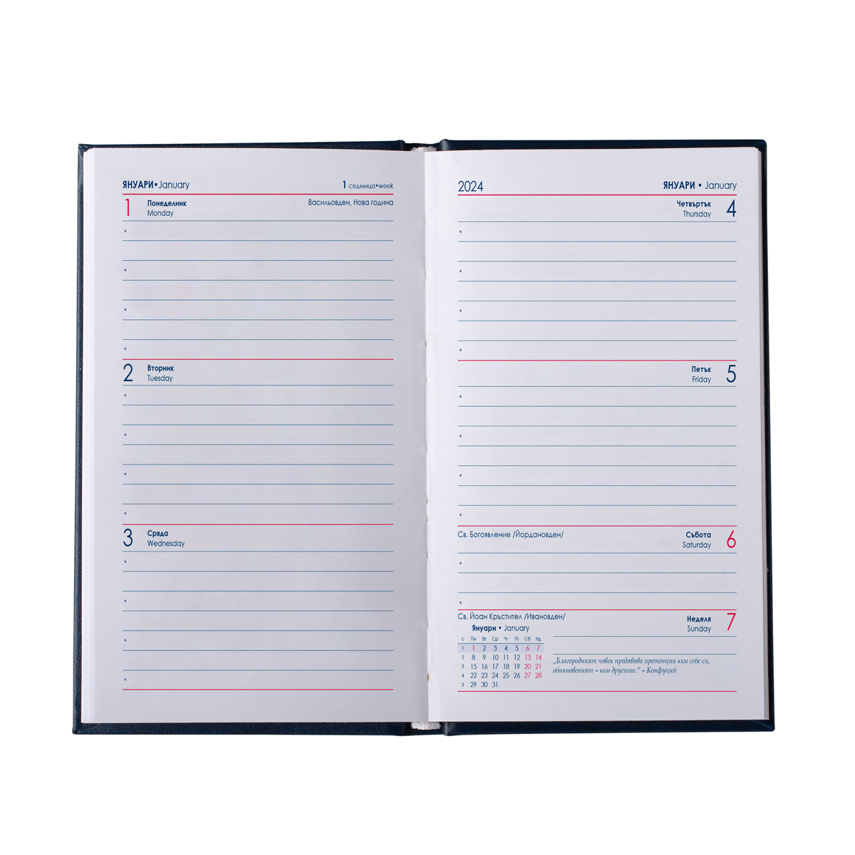 Джобен бележник слим – седмичник с твърда подвързия.