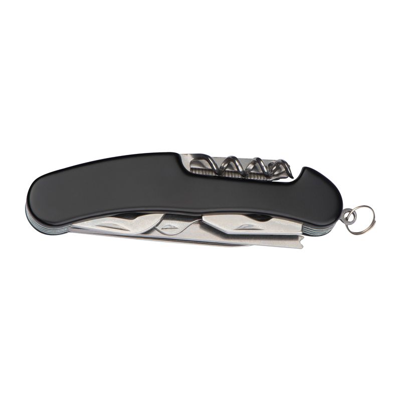 Мултифункционално джобно ножче със здрав метален корпус и ергономичен дизайн, включващ нож, трион, ножичка, тирбушон, кръстата отвертка Phillips, шило за пробиване, пила за нокти, отварачка за консерви, отварачка за бутилки с отвертка, инструмент за почистване на риба с кука за разглобяване на въдица.