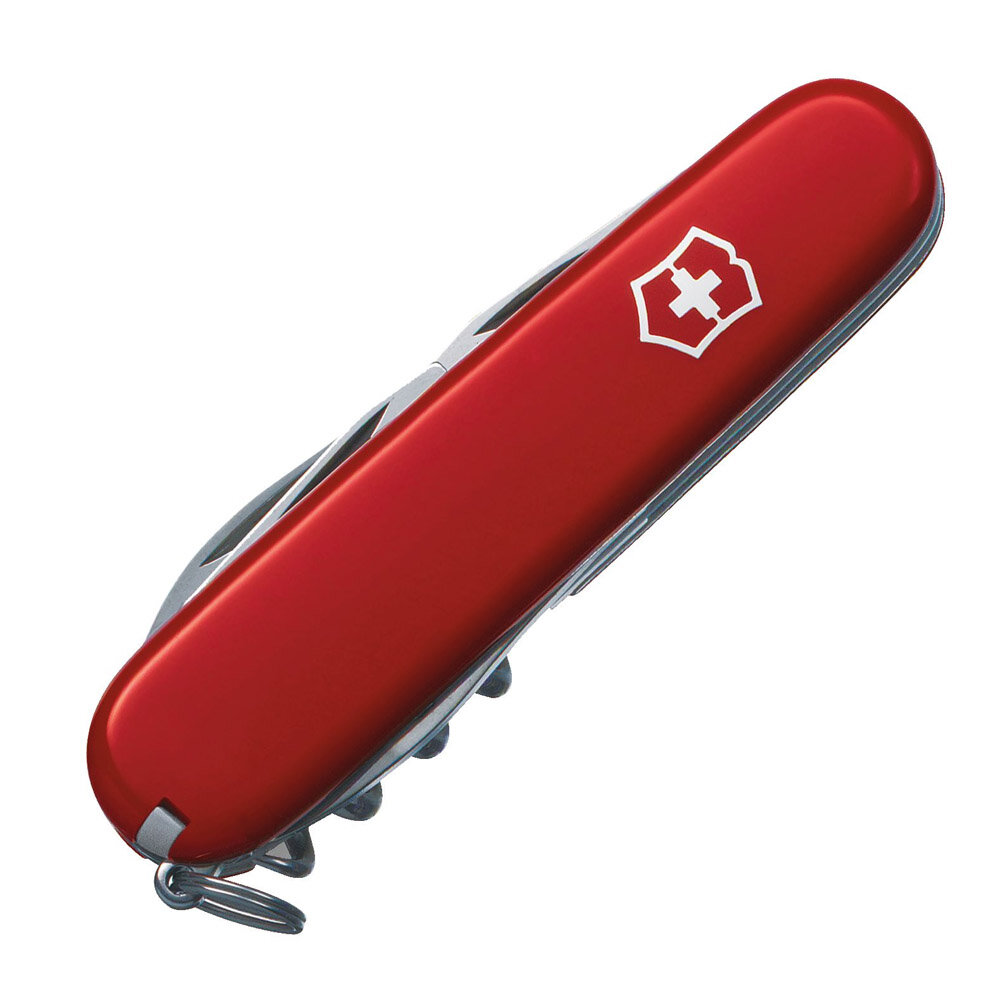 Оборудван с голям и малък нож, тирбушон, отварачка за консерви, отварачка за бутилки, голяма и малка отвертка, приспособление за оголване на жици, шило, пинсета, клечка за зъби и халка за ключове, този многофункционален инструмент е надежден избор за ежедневна употреба, къмпинг или приключения на открито.