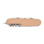 Мултифункционален джобен нож от 11 части с дървено покритие, изработен от неръждаема стомана, включващ нож, трион, ножичка, тирбушон, кръстата отвертка Phillips, шило за пробиване, пила за нокти, отварачка за консерви, отварачка за бутилки с отвертка, инструмент за почистване на риба с кука за разглобяване на въдица.