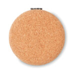 Джобно компактно огледало в кръгла форма с естествено покритие от корк, което придава естествен и стилен вид.