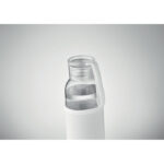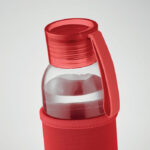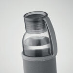 Бутилка от рециклирано стъкло с неопренова торбичка и PP капак със силиконова закачалка. Без течове. Вместимост: 500 мл.