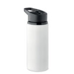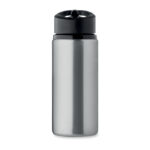 Бутилка с една стена от рециклирана неръждаема стомана (90% рециклирана неръждаема стомана и 10% неръждаема стомана) със сгъваем накрайник за уста, сламка и капак с дръжка за носене. Вместимост: 500 мл.