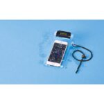 Водоустойчив калъф за телефон от PVC с регулируема лента и пружинно заключване. Прозрачен отпред и матово бял отзад. Позволява на потребителя да взаимодейства с екрана отвън. Калъфът има херметично затваряне и цветен капак с велкро затваряне. 95 х 240 мм