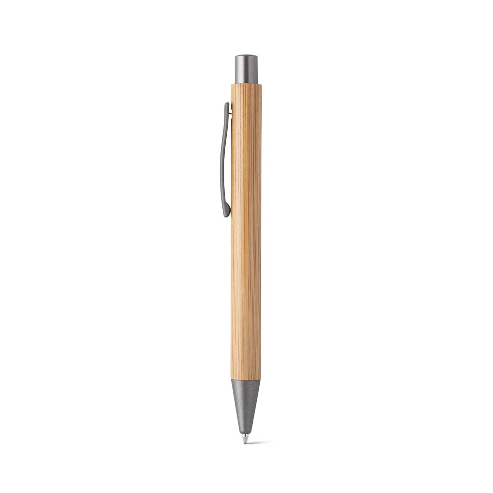 Химикалка от бамбук с метален клипс. Синьо мастило. Ø11 x 137 мм