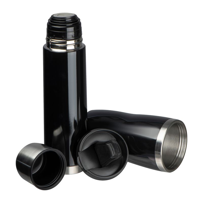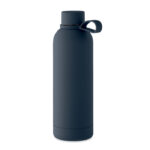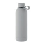 Вакуумно изолираща бутилка с двойна стена от рециклирана неръждаема стомана (90% рециклирана неръждаема стомана и 10% неръждаема стомана) с гумено покритие и силиконова дръжка. Вместимост: 500 мл.