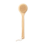 Бамбукова четка за баня с въже от юта и найлонови косми. Бамбукът е естествен продукт, възможно е да има леки вариации в цвета и размера на артикул, което може да повлияе на крайния резултат от декорацията.
