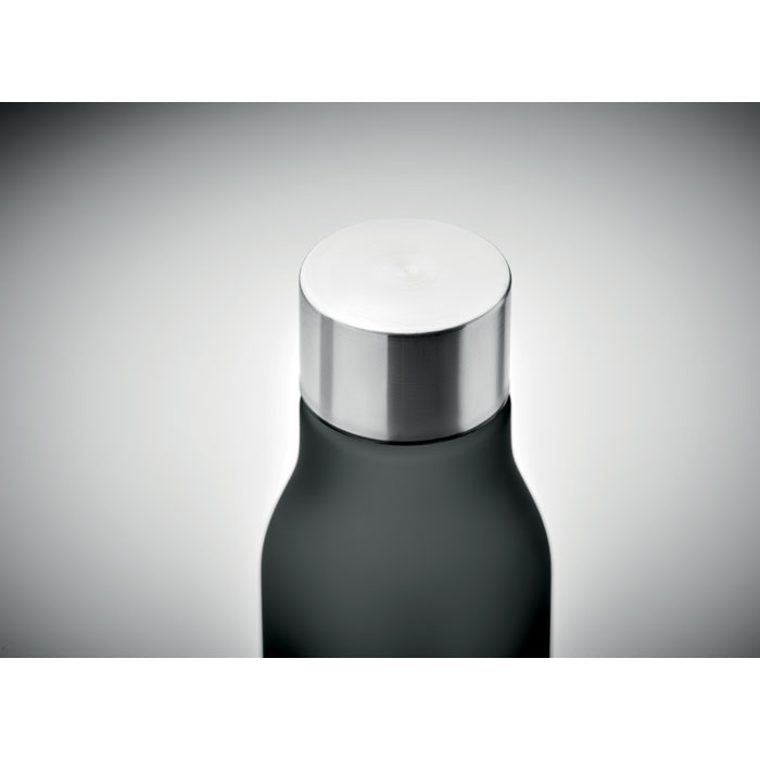 Бутилка за пиене от RPET с гумирано покритие (прозрачно матирано) и капачка от неръждаема стомана с вътрешен RPET капак и силиконов пръстен. Без BPA. Без течове. Вместимост: 600 мл. Не е подходящ за газирани напитки.
