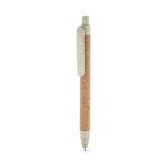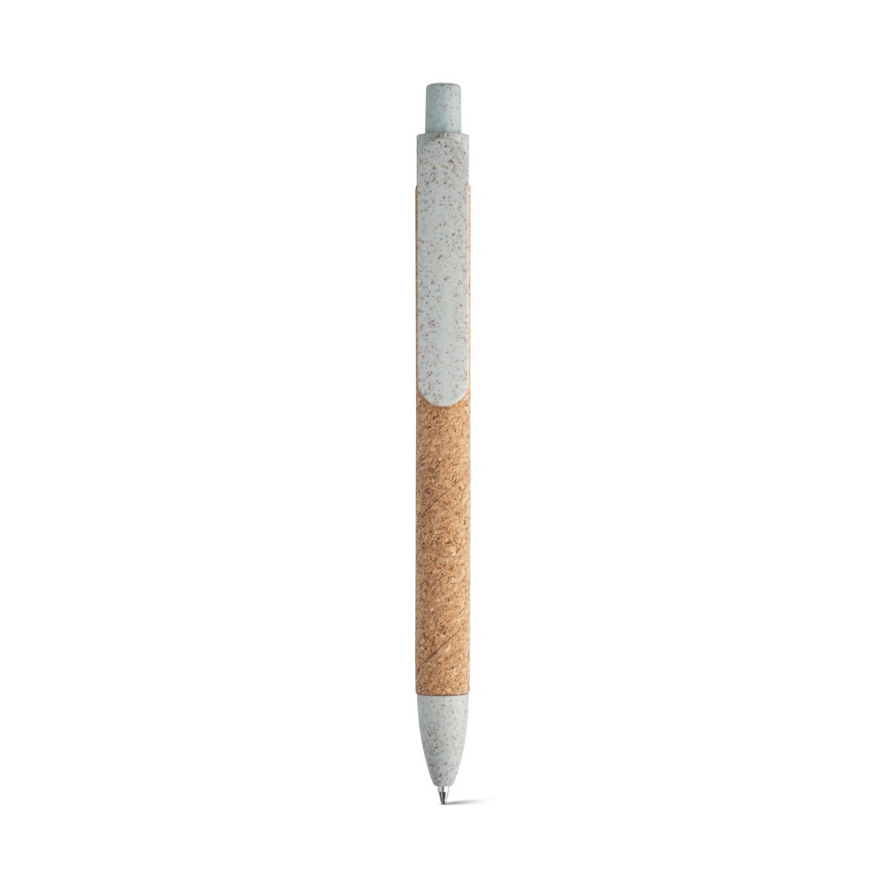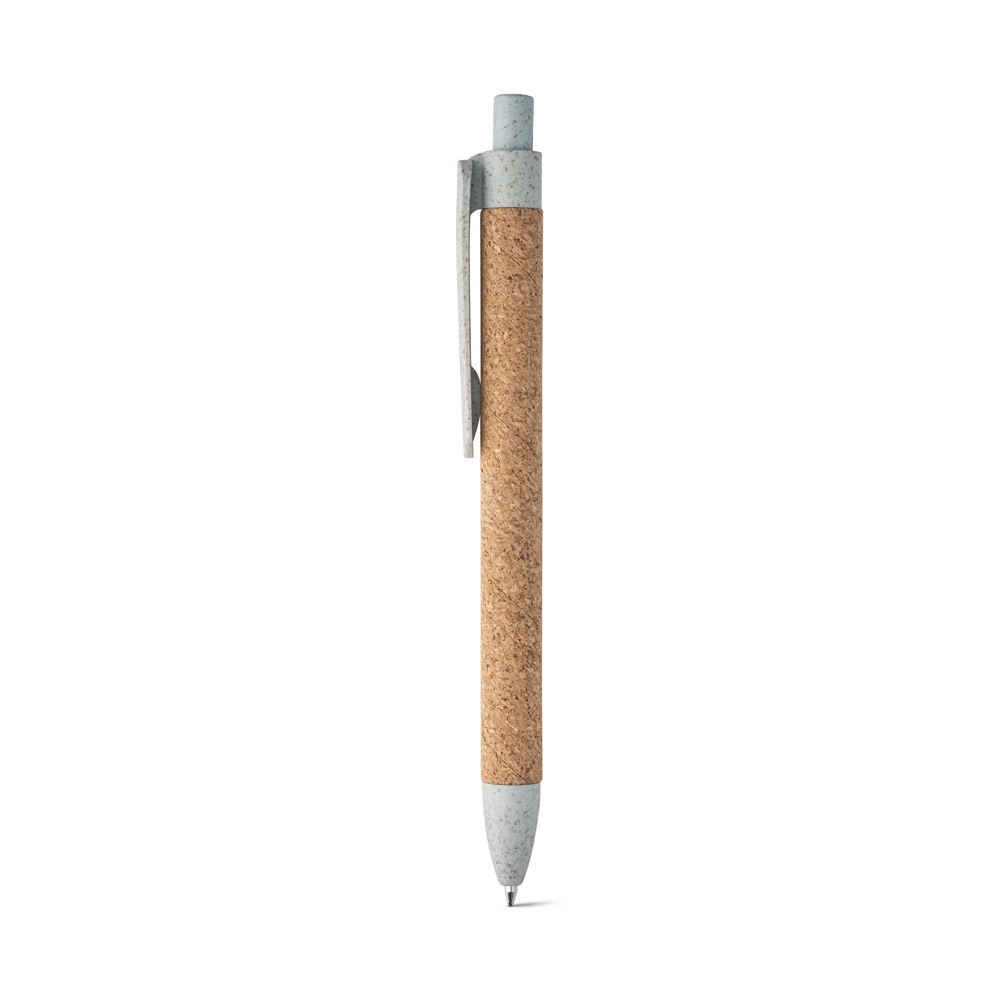 Коркова химикалка с клипс и цветни елементи от влакна от пшенична слама и PP. Синьо мастило. ø11 x 140 мм