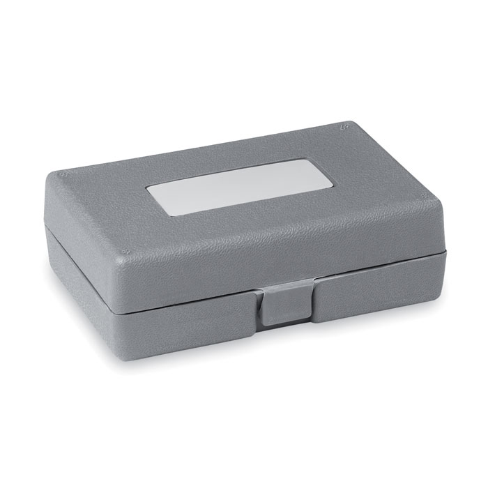 Сгъваем комплект инструменти от 25 части, включително пинсети, комплект отвертки от 6 части, удължител, комплект гнезда от 4 части, плоски клещи, режещи клещи и комплект битове от 10 части, опаковани в пластмасова кутия.