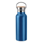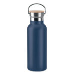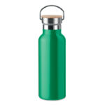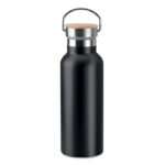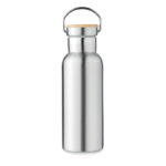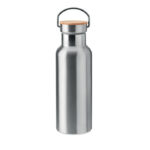 Изолираща вакуумна колба от неръждаема стомана с двойна стена с капак от бамбук и дръжка за носене. Вместимост: 500 мл. Сублимационен печат се предлага само върху бял артикул. Без течове. Бамбукът е естествен продукт, възможно е да има леки вариации в цвета и размера на артикул, което може да повлияе на крайния резултат от декорацията.