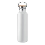 Изолираща вакуумна колба от неръждаема стомана с двойна стена с бамбуков капак и дръжка за носене. Вместимост: 750 мл. Без течове. Бамбукът е естествен продукт, възможно е да има леки вариации в цвета и размера на артикул, което може да повлияе на крайния резултат от декорацията.