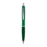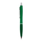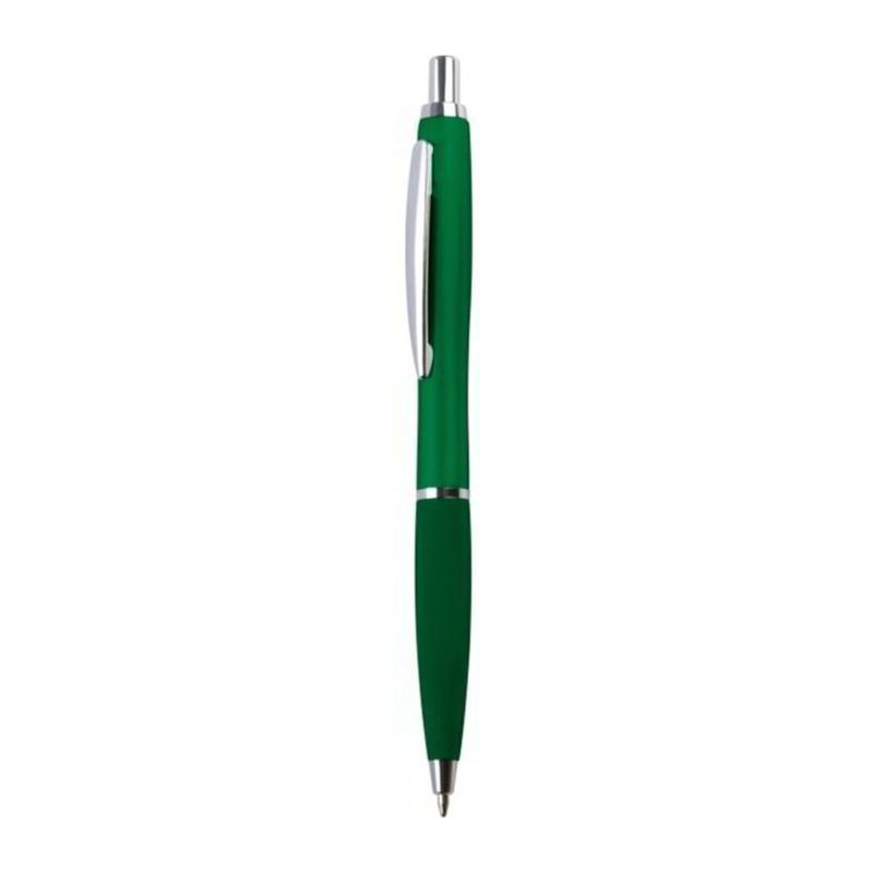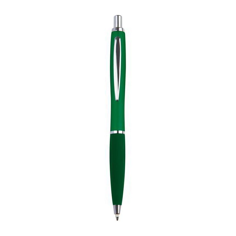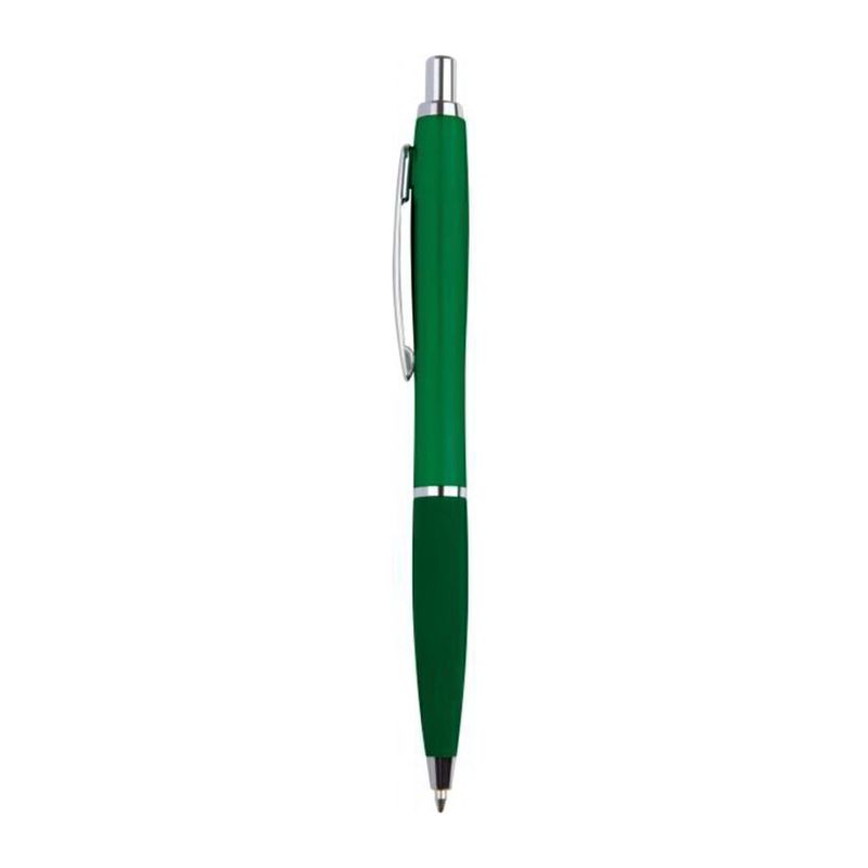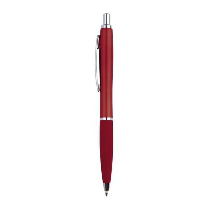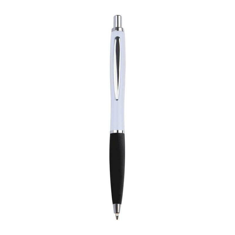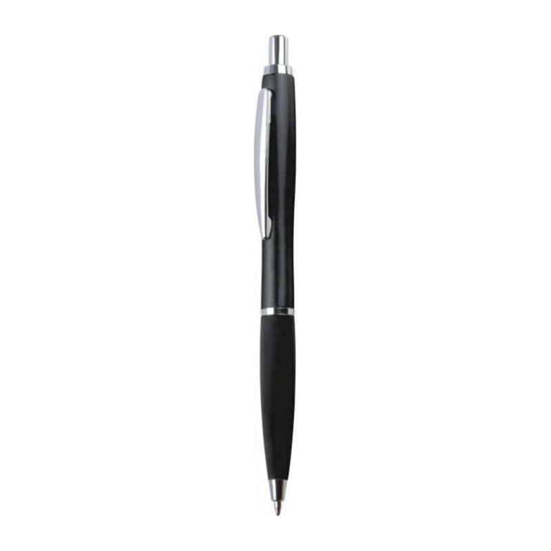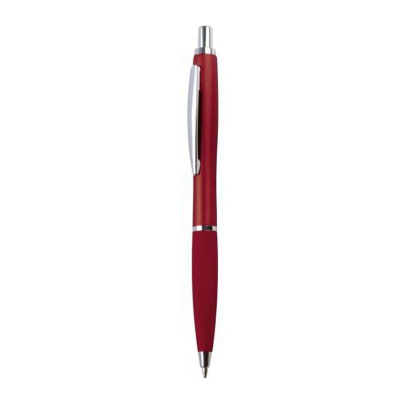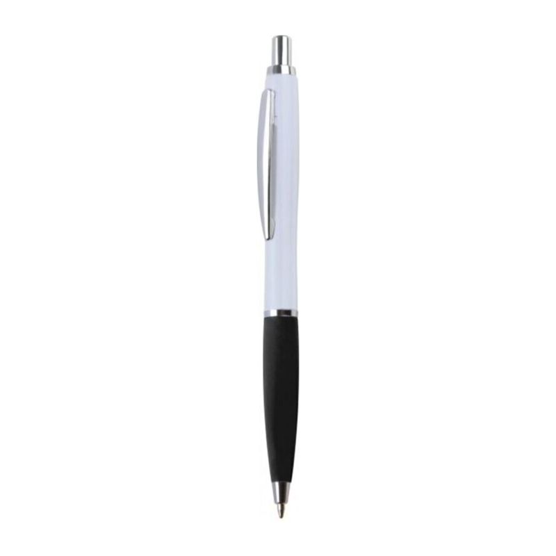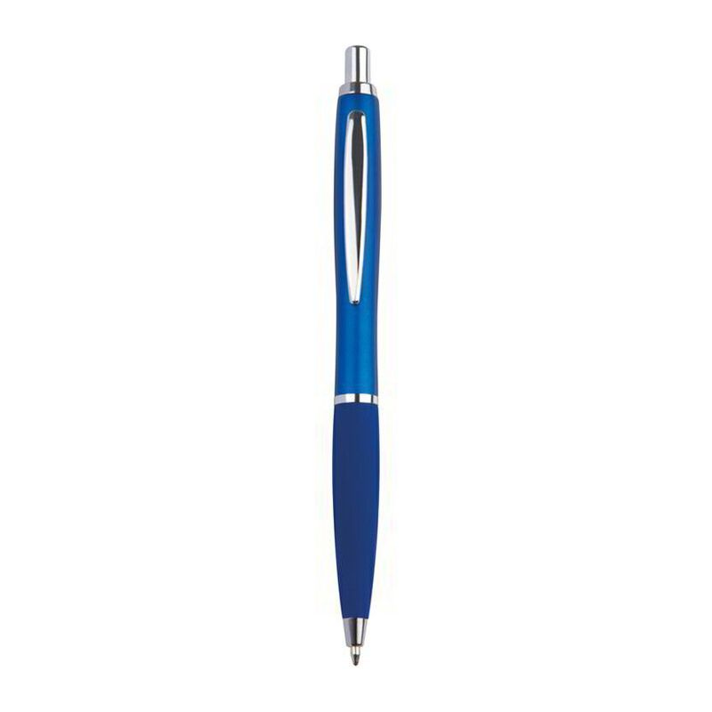 Тънка пластмасова химикалка с пластмасов пълнител – син  и гумирана зона за захващане.
