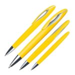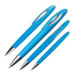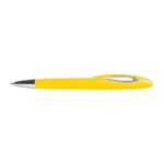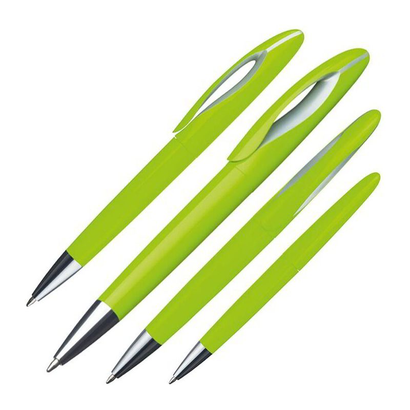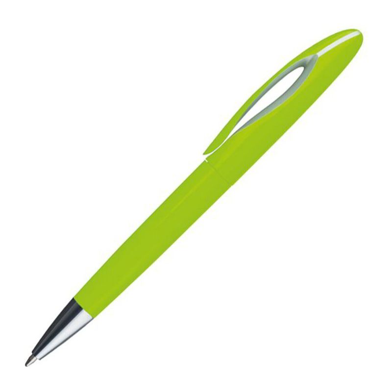 Пластмасова химикалка с въртящ се механизъм и синьо пишеш пълнител.