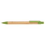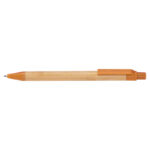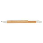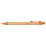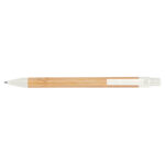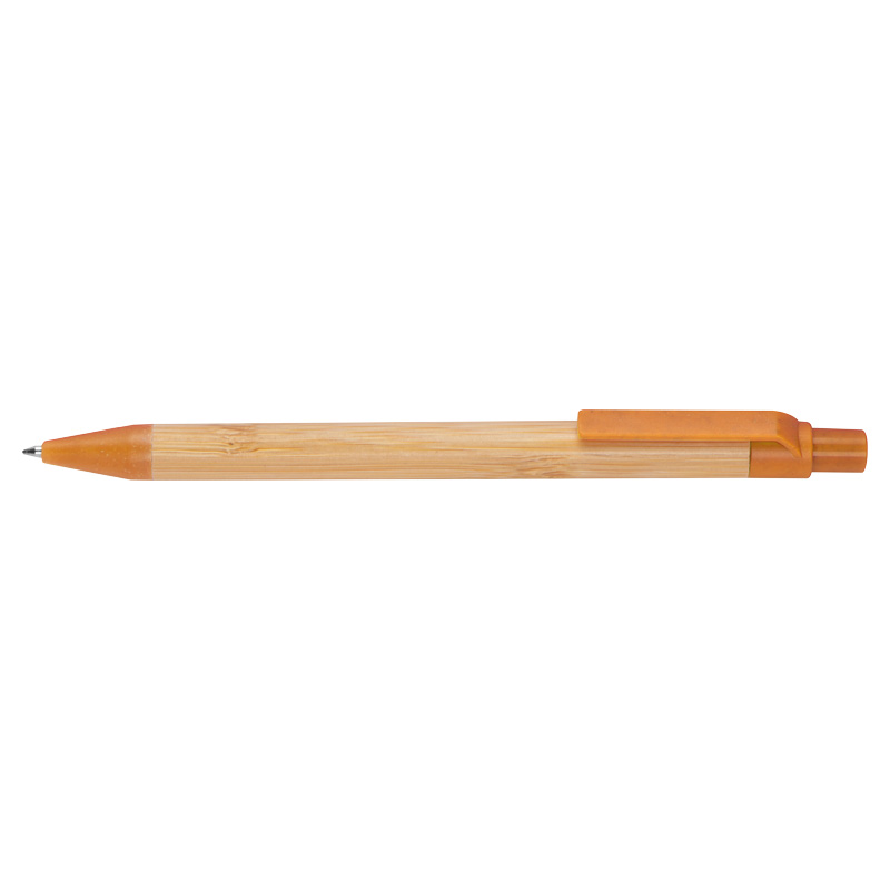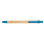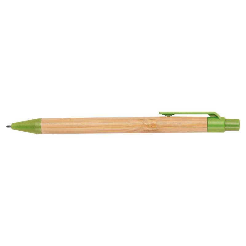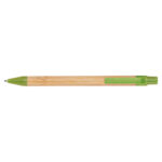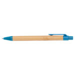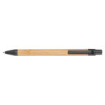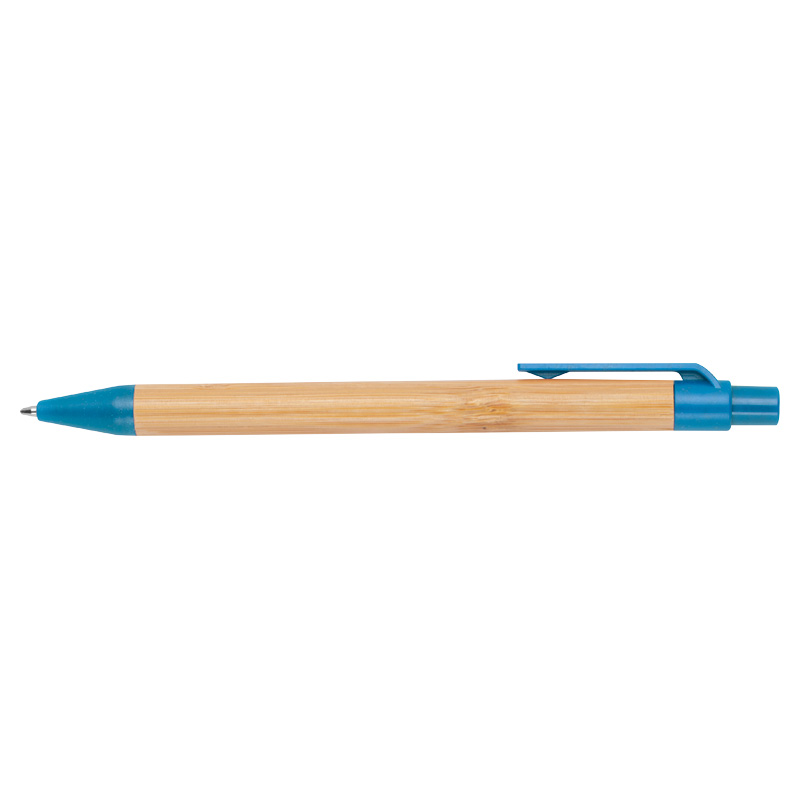 Прибираща се бамбукова химикалка с апликации от цветна пшенична слама и пълнител със син надпис.
