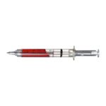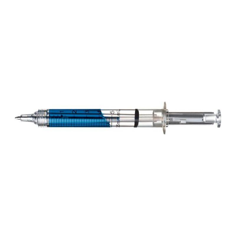 Инжекционна пластмасова химикалка със синьо или червено мастило според цвета на химикала.
