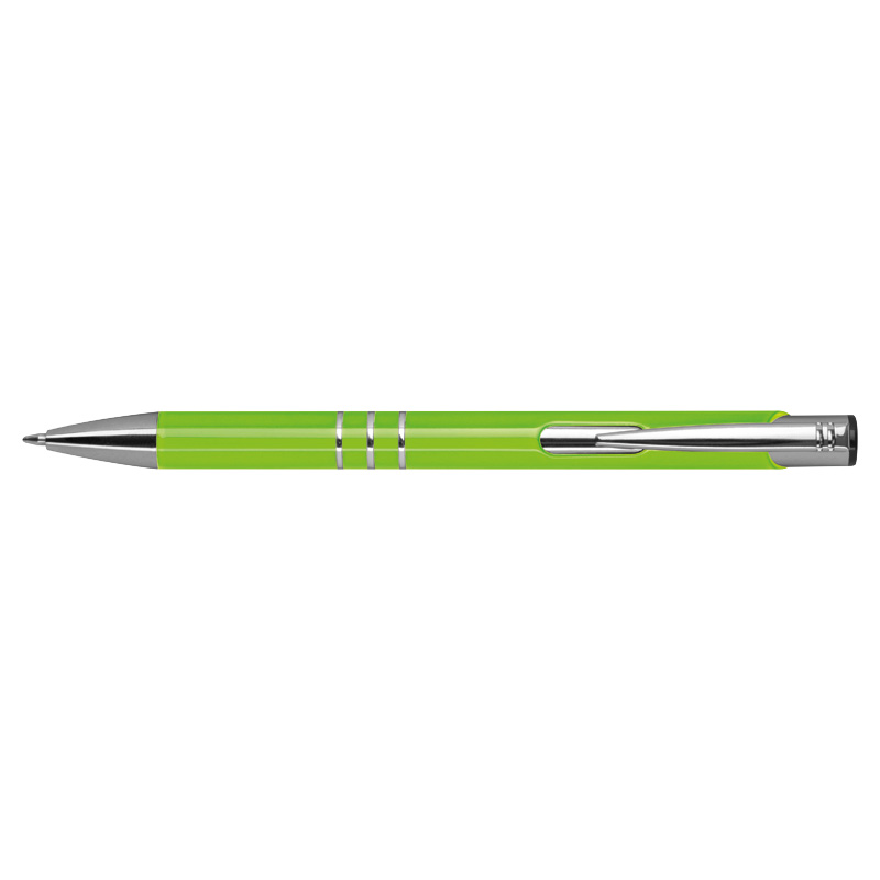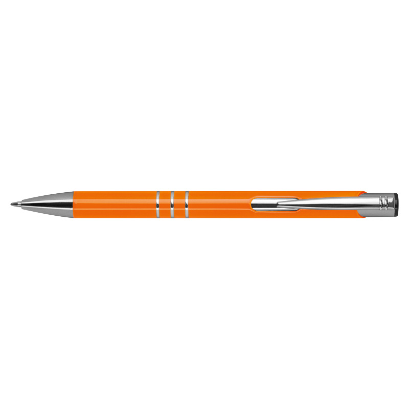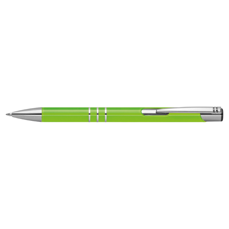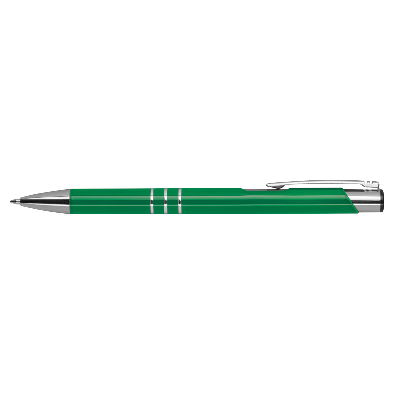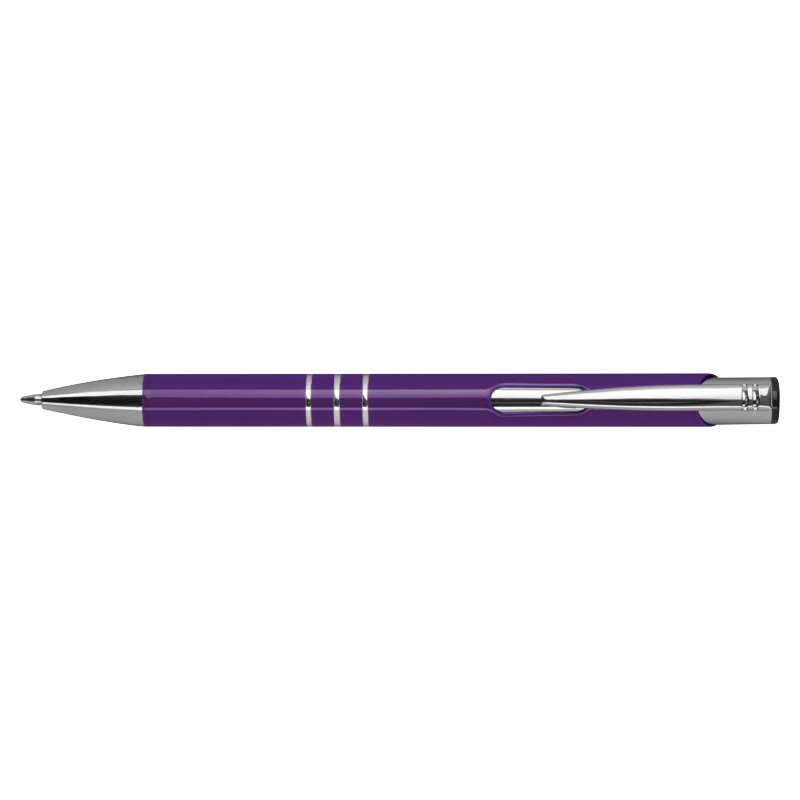 Изцяло лакирана метална химикалка с 3 декоративни ринга и син надписващ пълнител с голяма вместимост.