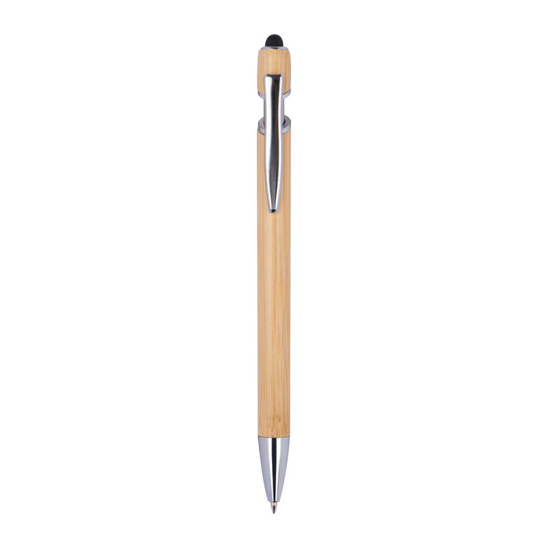 Бамбукова химикалка със сребърни апликации, пълнител с голяма вместимост и тъчпад.