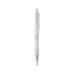 X3 GRS Certified Recycled PC Plastic Pen Frosted съчетава устойчивост с функционалност. Изработена от 84% рециклирана GRS-сертифицирана PC пластмаса, включително горната част, скобата, върха и цилиндъра с матирано покритие, тази химикалка е проектирана с внимание към екологичността и стила. Тя разполага със синьо мастило Dokumental, което пише гладко до 1200 метра с ширина на писане 1,0 мм. Щракващият механизъм осигурява лесна работа, а логото за рециклиране на RPC под буталото подчертава устойчивия ѝ произход.
