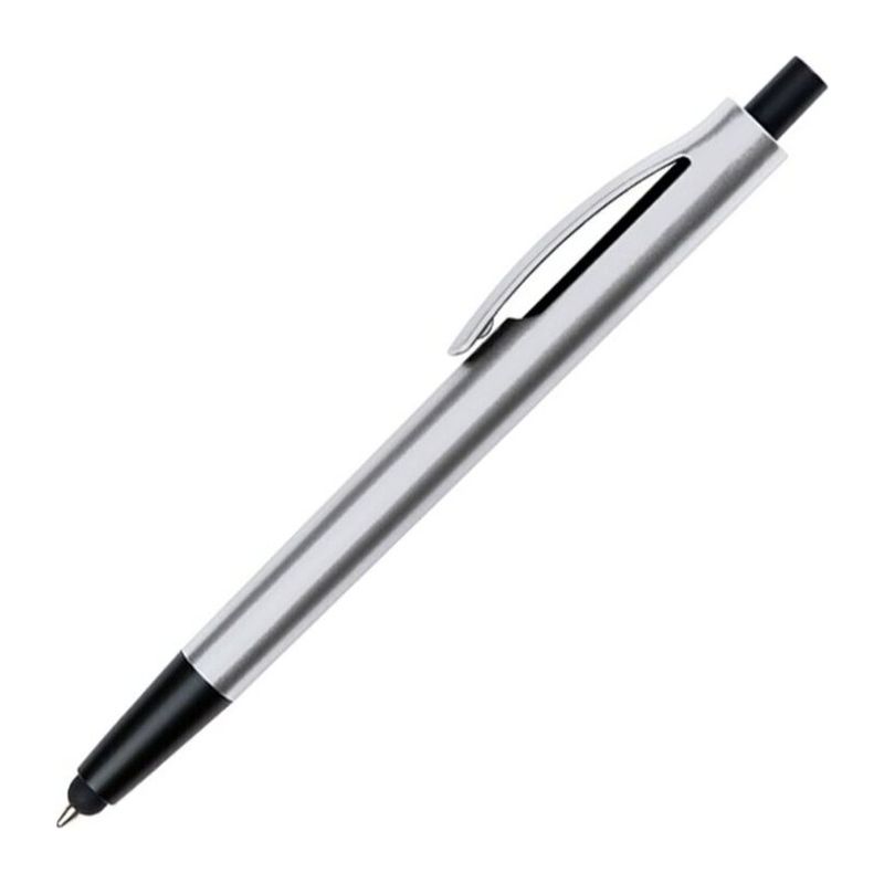Пластмасова химикалка със сензорна функция и син пълнител за писане.
