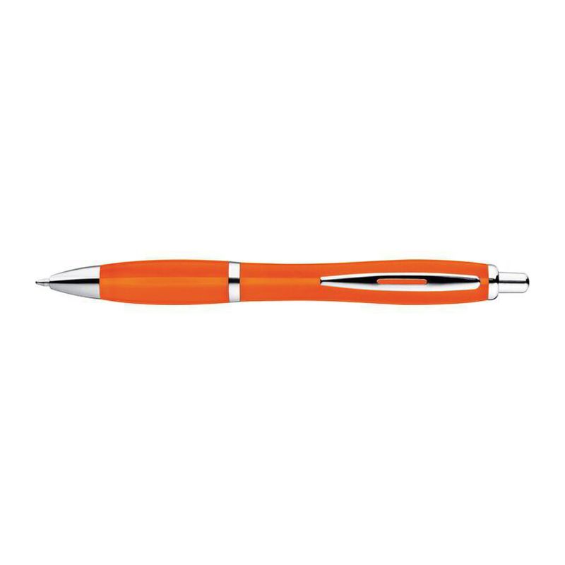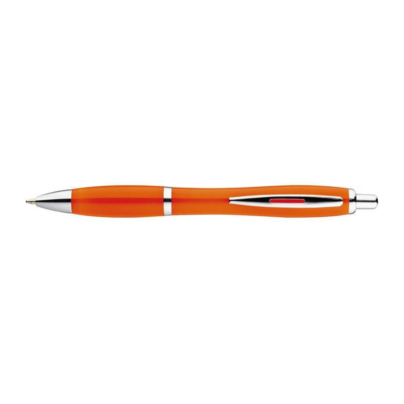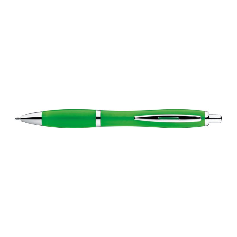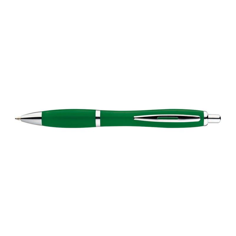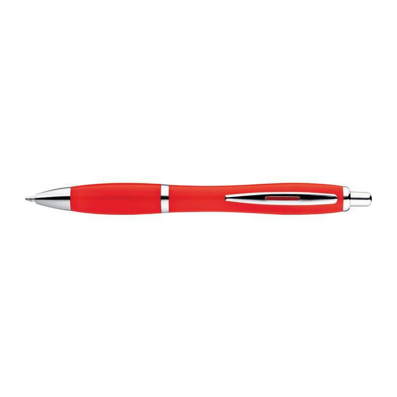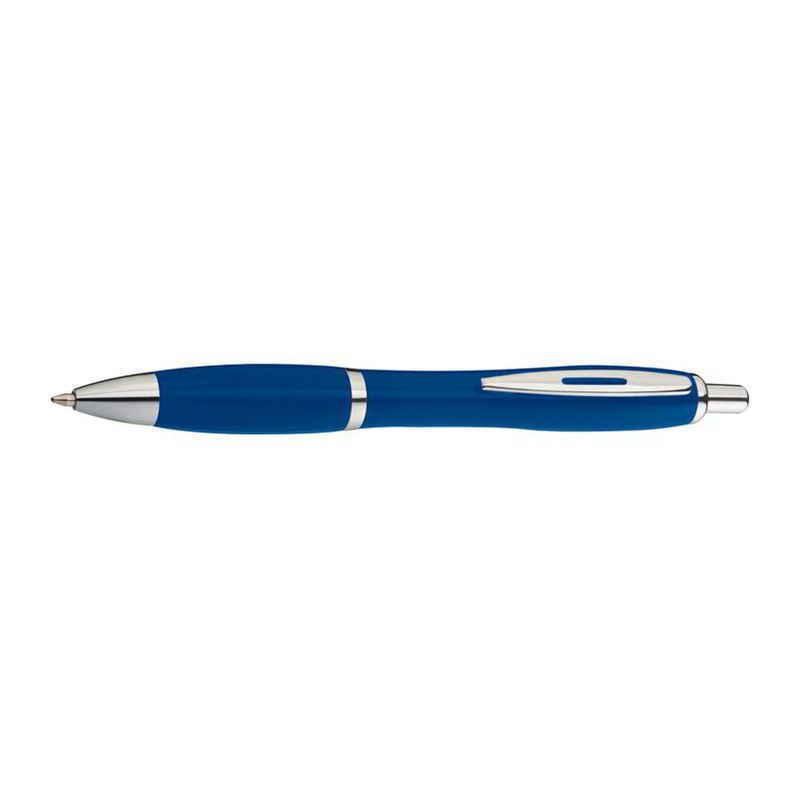 Химикалка с дръжка в същия цвят и зона за захващане със син пълнител за писане с голям капацитет.