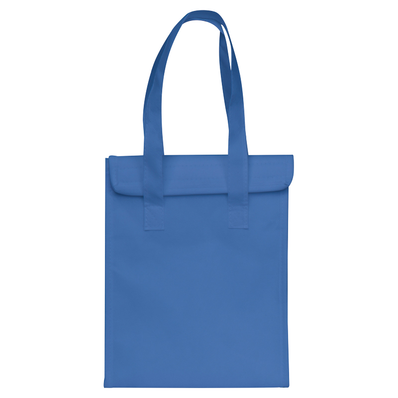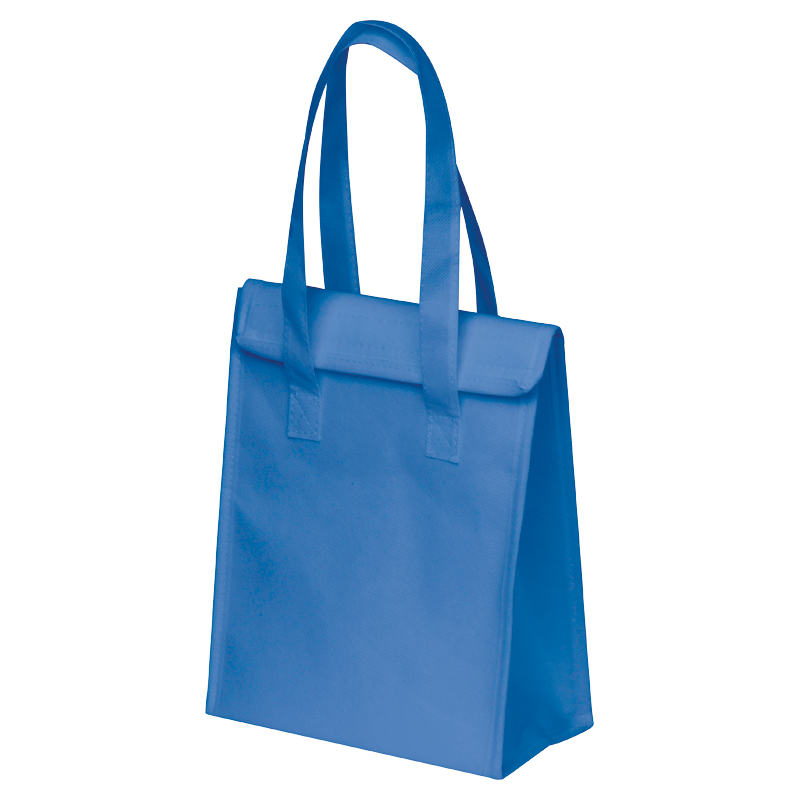 Подплатена хладилна чанта от нетъкан текстил с алуминиево покритие отвътре, велкро закопчаване и две дръжки за носене.
