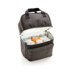 600D полиестерен охладител с дръжки и отделни отделения. Просторното горно отделение е чудесно за храни като плодове, закуски или бисквити. Квадратното долно отделение е идеално за носене на до 6 кутии напитки. Предният джоб с цип е идеален за дребни аксесоари като ключове.