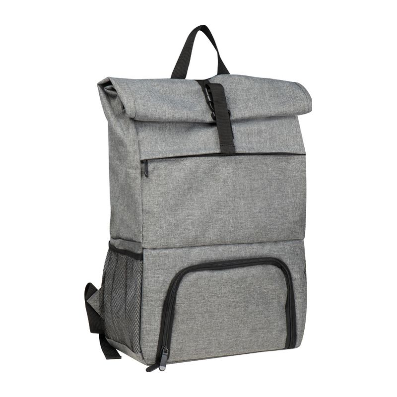 Стилна раница, изработена от здрав 600D полиестер с отделно отделение за охлаждане. С регулируемата щракваща закопчалка в горната част, размерът на раницата може да се регулира индивидуално според пълнежа. Освен това има предно отделение с цип, две мрежести отделения отвън (едно отдясно и едно отляво) и регулируеми подплатени презрамки.