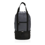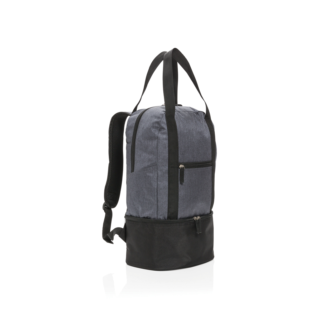 Тази двуцветна раница от 500D полиестер има основно отделение за вашите плажни принадлежности и долно охладително отделение с място за до 8 кутии. Лесно преминаване към голяма чанта с презрамките.
