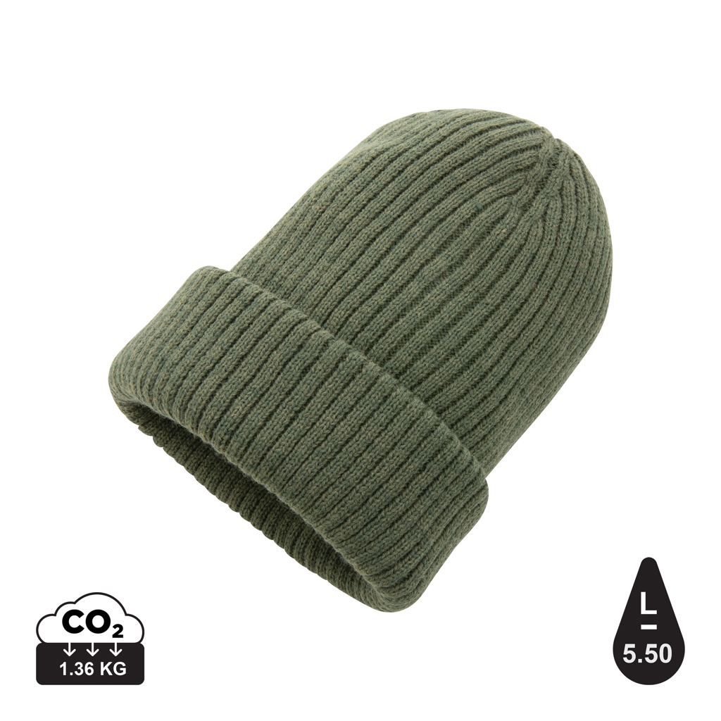 Красива двуслойна плетена шапка, подходяща за всеки. Класическа сгъваема шапка за лесна визия, която ще ви топли през студените дни. Шапката съдържа Polylana®. Polylana® е алтернатива с ниско въздействие на 100% акрилни влакна, използваща по-малко енергия и вода. Включва индикатора AWARE™, който валидира истинското използване на рециклирани материали. Всяка шапка спестява 5,5 литра вода. 2% от приходите от всеки продаден продукт на Impact ще бъдат дарени на Water.org. Един размер за всички. Състав: 30% рециклиран полиестер, 30% полиестер, 40% акрил.
