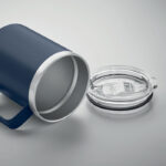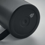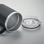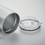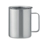 Двустенна чаша от рециклирана неръждаема стомана (90% рециклирана неръждаема стомана и 10% неръждаема стомана) с плъзгащ се капак на отвора за глътка. Без течове. Вместимост: 300 мл.