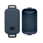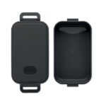 Кутия за обяд от рециклиран полипропилен с херметичен капак, силиконов клапан и две странични катарами. Вместимост: 800 мл.