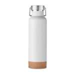 Двойна стена с вакуумна изолация от рециклирана неръждаема стомана, капакът има дръжка за носене и основа с детайли от корк. Без течове. Вместимост: 500 мл.