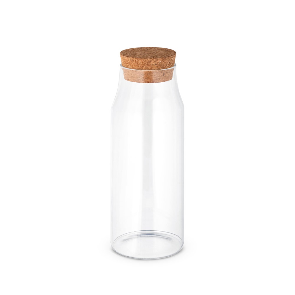 Бутилка от боросиликатно стъкло с корков капак. Вместимост до 1л. Доставя се в кутия. ø83 x 215 мм