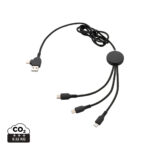 Плетен найлонов зареждащ кабел с 5 различни конектора: USB C вход, USB A вход, тип C изход, IOS изход и микро USB изход. Това ви позволява да използвате кабела и с изходни устройства тип C, които са включени в по-новото поколение телефони и компютри macbook. Кабелът също има опция за USB A изходен вход, така че може да зарежда всяко устройство от всеки изходен източник. Корпус от ABS с опция за гравиране на вашето лого, което ще свети при използване на кабела. Без PVC. Дължина 120см.