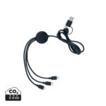 6 в 1 кабел за зареждане с корпус, изработен от 100% стандартна RCS рециклирана ABS пластмаса и 120 см кабел, изработен от 100% рециклиран TPE. RCS (Recycled Claim Standard) е стандарт за проверка на рециклираното съдържание на продукт по цялата верига на доставки. Общо рециклирано съдържание: 57% въз основа на общото тегло на артикула. Кабелът се предлага с 5 различни конектора: USB C вход, USB A вход, тип C изход, IOS изход и микро USB изход. Това ви позволява да използвате кабела с изходни устройства тип C, които са включени в по-новото поколение телефони и компютри macbook. Кабелът също има опция за USB A изходен вход, така че може да зарежда всяко устройство от всеки изходен източник. 100% без PVC. Опаковани в смесени опаковки FSC®.