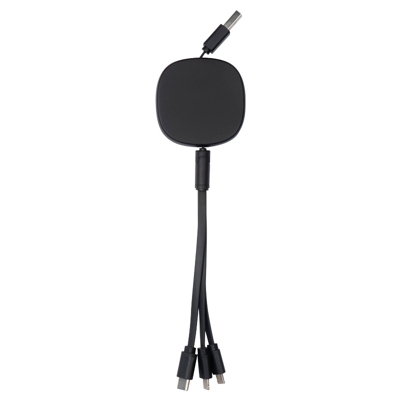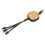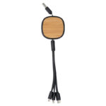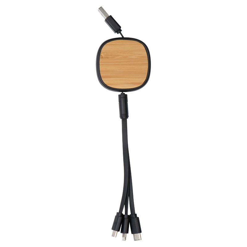 Кабел за зареждане с USB, C-Type, Mini USB и iOS връзка. Изработена от пластмаса с бамбукова декорация.