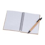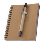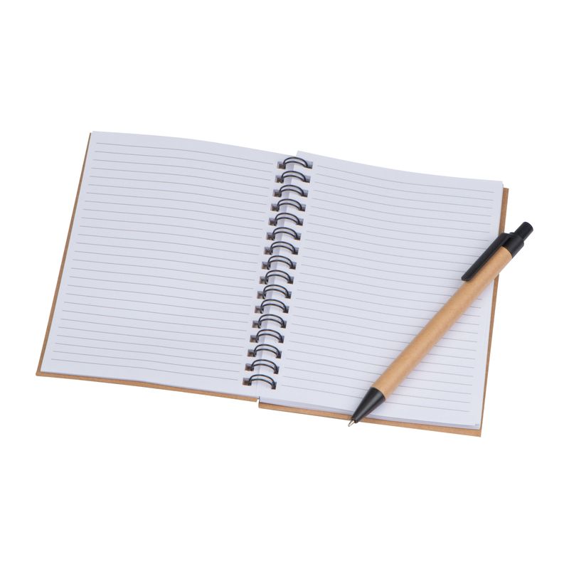 ЕКО тефтер от рециклиран картон със 120 страници рециклирана хартия и химикал със синьо мастило.