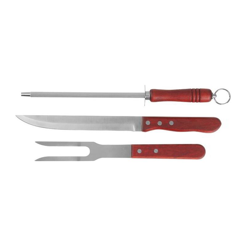 Класически комплект, включващ карвинг нож, вилица и точило за остриета.