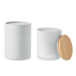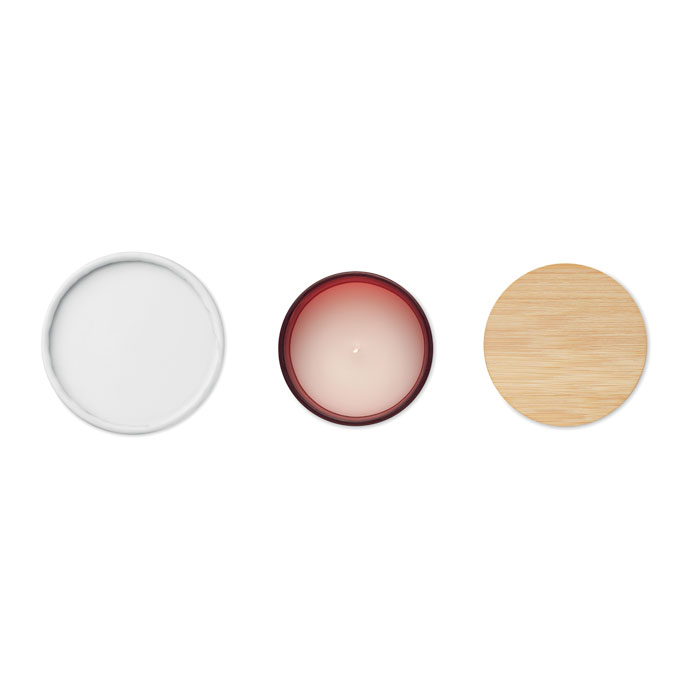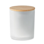 Ароматизирана восъчна свещ на растителна основа в държач за буркан от матово стъкло с бамбуков капак. 280 гр. Време на горене: 46 часа. Предлага се в подаръчна кутия от хартиена туба. Бамбукът е естествен продукт, възможно е да има леки вариации в цвета и размера на артикул, което може да повлияе на крайния резултат от декорацията.