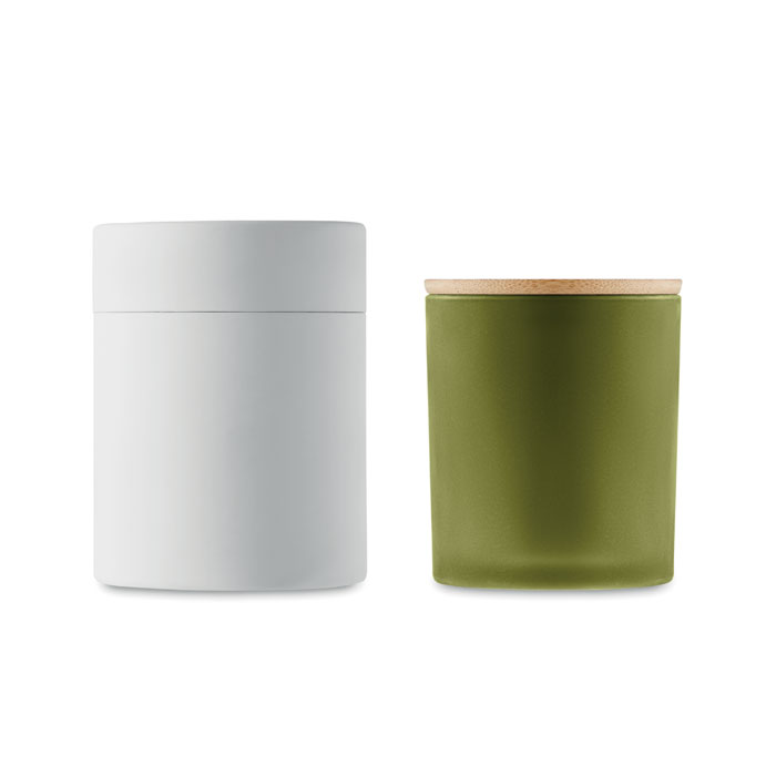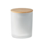 Ароматизирана восъчна свещ на растителна основа в държач за буркан от матово стъкло с бамбуков капак. 200 гр. Време на горене: 33 часа. Предлага се в подаръчна кутия от хартиена туба. Бамбукът е естествен продукт, възможно е да има леки вариации в цвета и размера на артикул, което може да повлияе на крайния резултат от декорацията.
