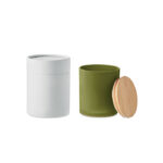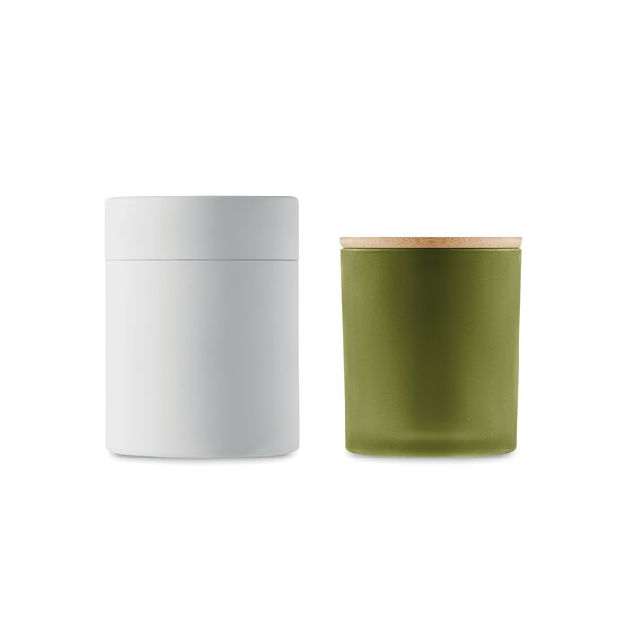 Ароматизирана восъчна свещ на растителна основа в държач за буркан от матово стъкло с бамбуков капак. 120 гр. Време на горене: 20 часа. Предлага се в подаръчна кутия от хартиена туба. Бамбукът е естествен продукт, възможно е да има леки вариации в цвета и размера на артикул, което може да повлияе на крайния резултат от декорацията.