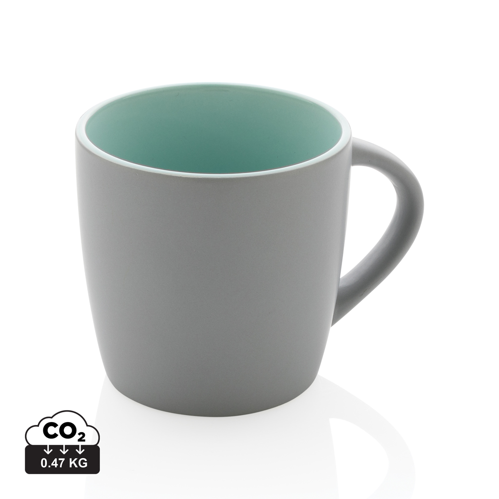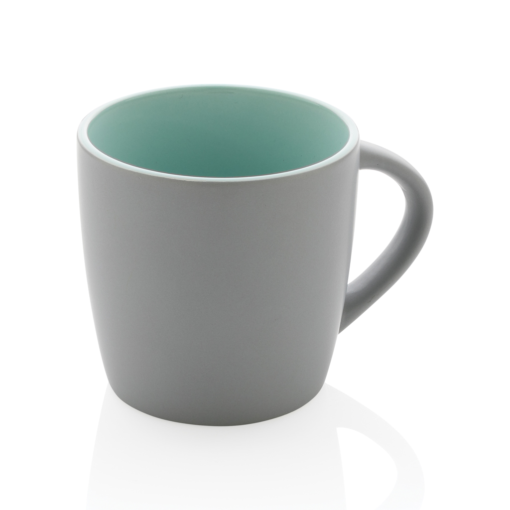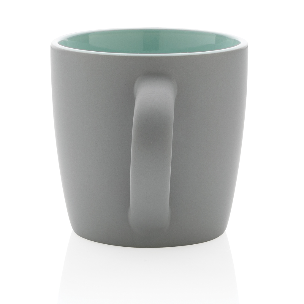 Тази керамична чаша се отличава със свеж дизайн с матово външно покритие и вътрешен цветен акцент. Чашата може да се мие в съдомиялна машина и е тествана в съответствие с EN12875-1 (поне 125 цикъла на измиване за всички методи на декорация). Опаковани в подаръчна крафт кутия. Вместимост 300мл.