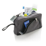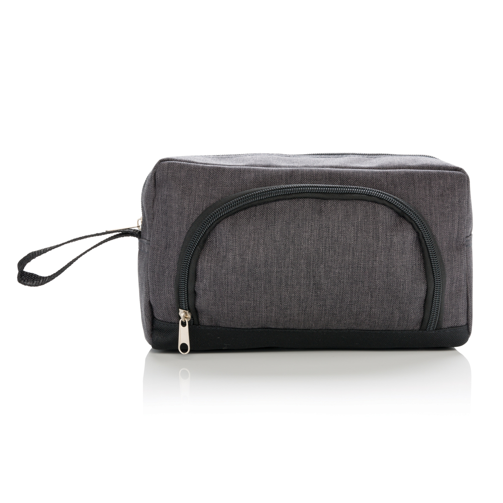 Двуцветна тоалетна чанта от 600D полиестер с достатъчно място за всички ваши козметични продукти и грим. Без PVC.