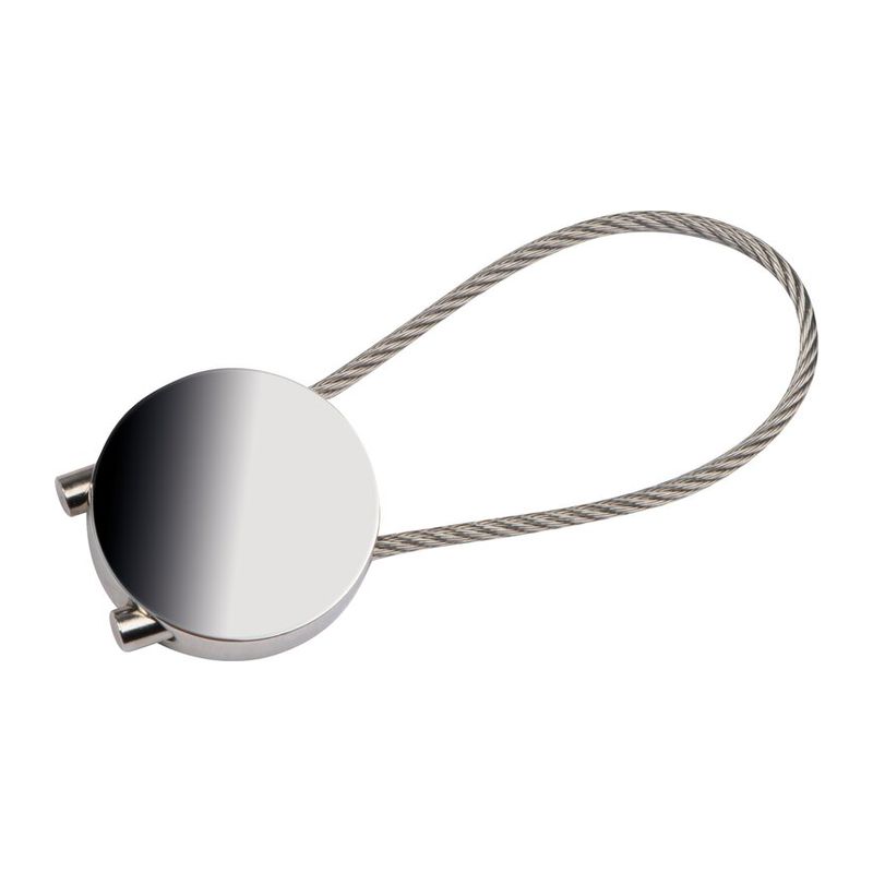 Кръгъл метален ключодържател с телена халка, предлагащ стилен и практичен начин за съхранение на ключове.