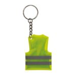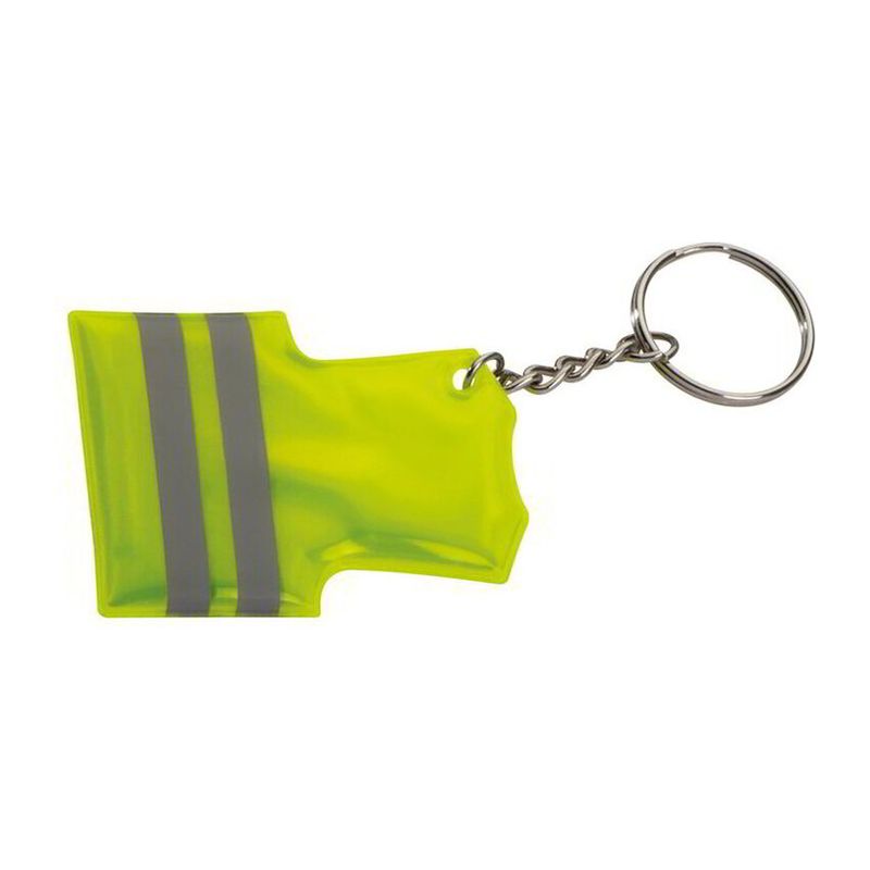 Ключодържател във формата на предпазна жилетка, оборудван със светлоотразителни ленти за по-добра видимост.