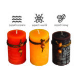 Комплект ароматни свещи в картонена подаръчна кутия с декориран хартиен капак.