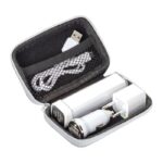 Комплектът се състои от външна пластмасова батерия с капацитет 2200 mAh, захранващ щепсел, USB зарядно за батерии, USB щепсел за кола, всичко това е опаковано в калъф.