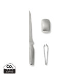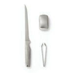 Нож за филе изработен от висококачествена японска стомана 420J. Ножът за филета има дълго, тънко и гъвкаво острие – идеално за прецизни разфасовки. Можете да използвате ножа например за филетиране на риба или дълбаене на шунка. Комплектът се доставя с метален сапун, който премахва миризми като риба и чесън. Кутията включва и пинсета за премахване на малки кости от риба. Перфектен подарък за кулинарни ентусиасти.