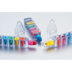Комплект от 6 восъчни пастели в прозрачен контейнер с форма на химикал.
